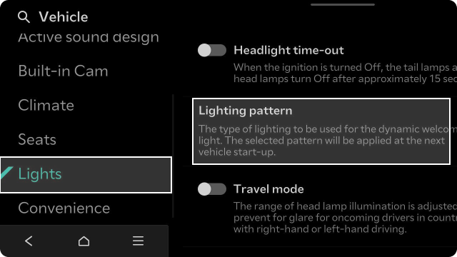 När du startar om bilen kommer den valda ljussignaturen att tillämpas.
